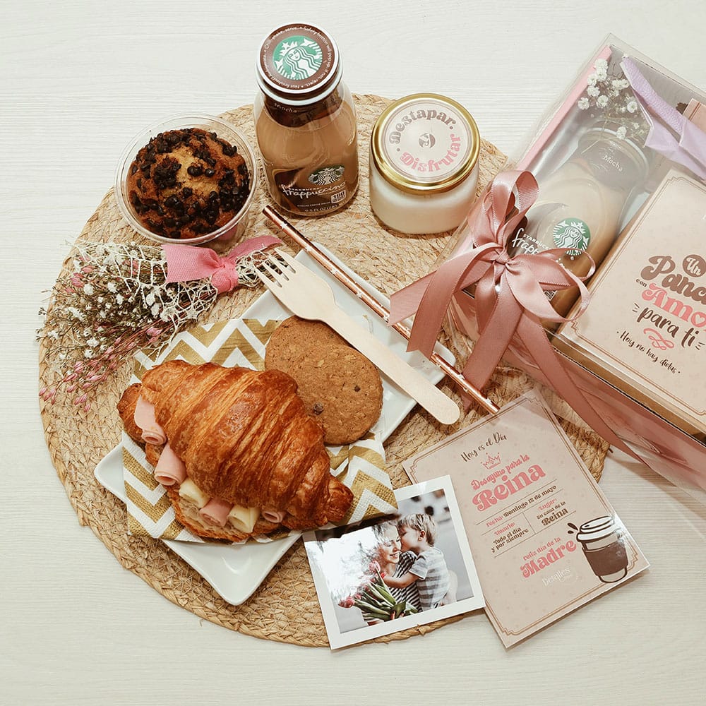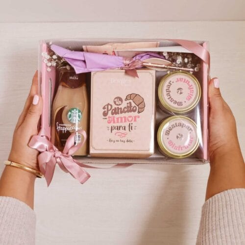 Empieza el día con un detalle encantador en tonos rosados que combina energía, sabor y ternura. Este box es ideal para sorprender con un desayuno especial que transmite cariño desde el primer sorbo hasta el último bocado.